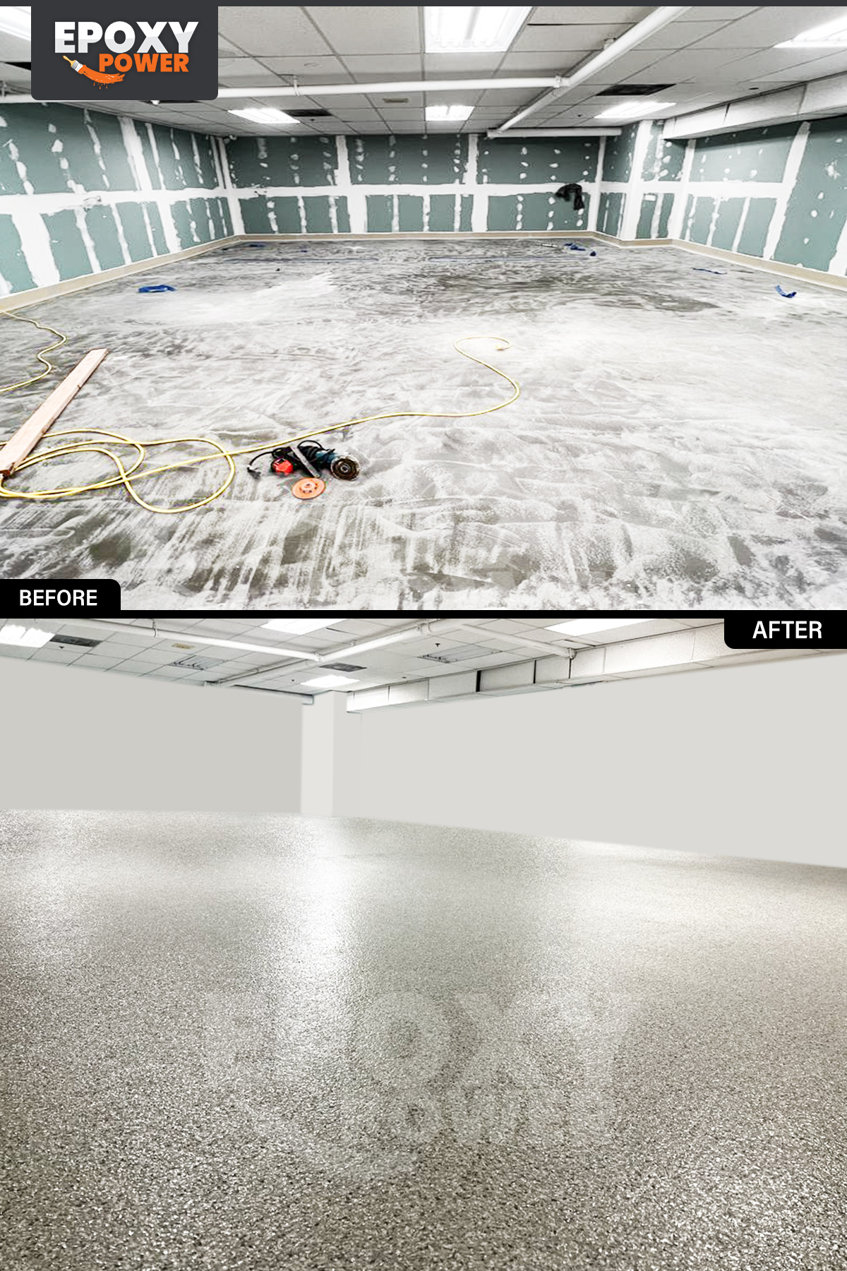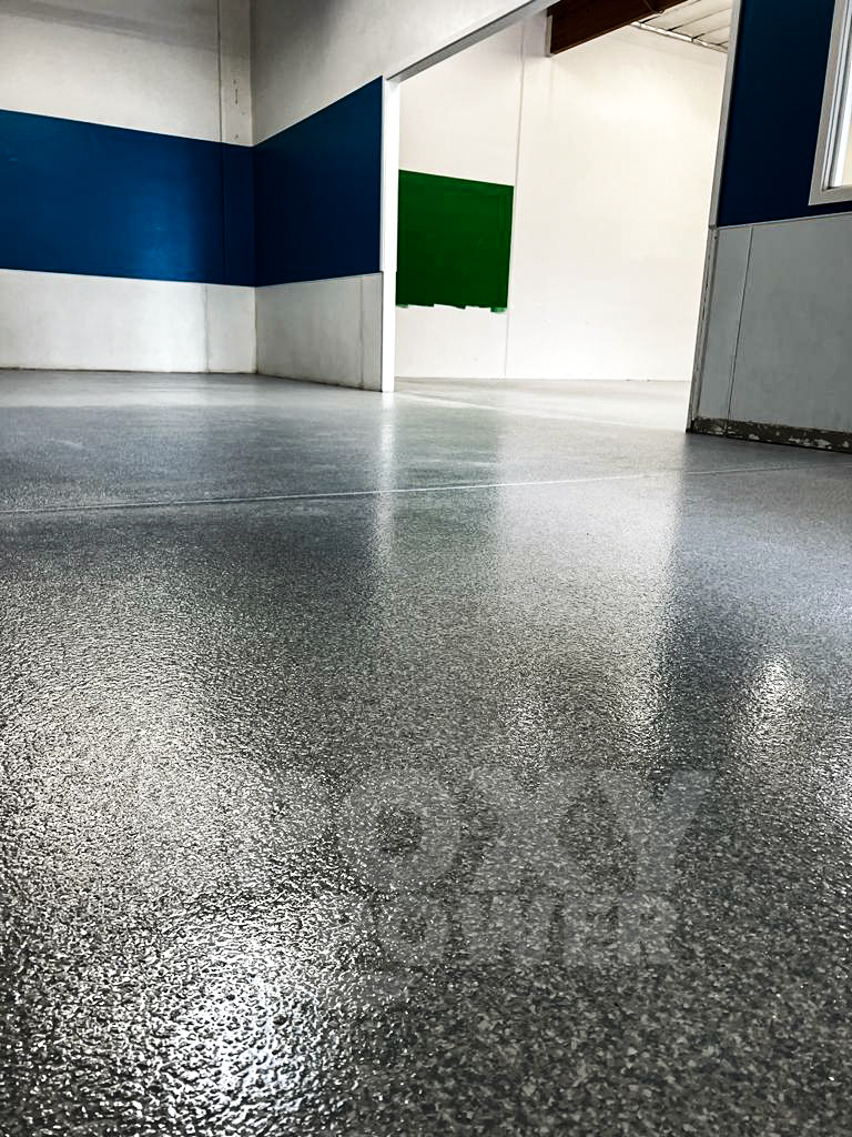 - Unmatched Visual Appeal Unlike other concrete floor paints, polyaspartic floor coatings are as attractive as they are tough. Epoxy Power by BMI offers a variety of color flake patterns that sit directly under the polyaspartic floor coating for an appealing, colorful finish. The coating will not crack or peel, so it protects the color flakes while maintaining its sleek look no matter what you throw its way.